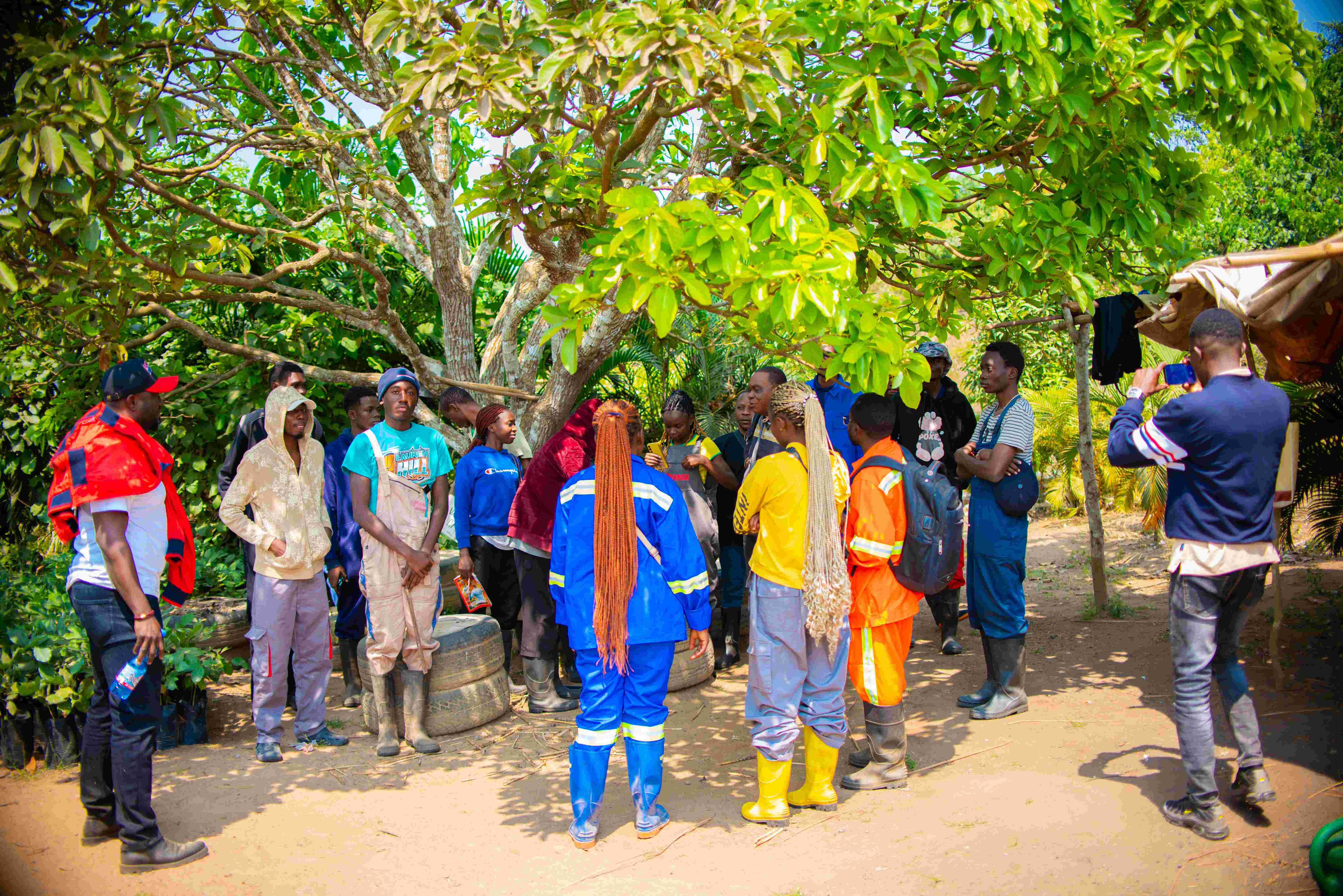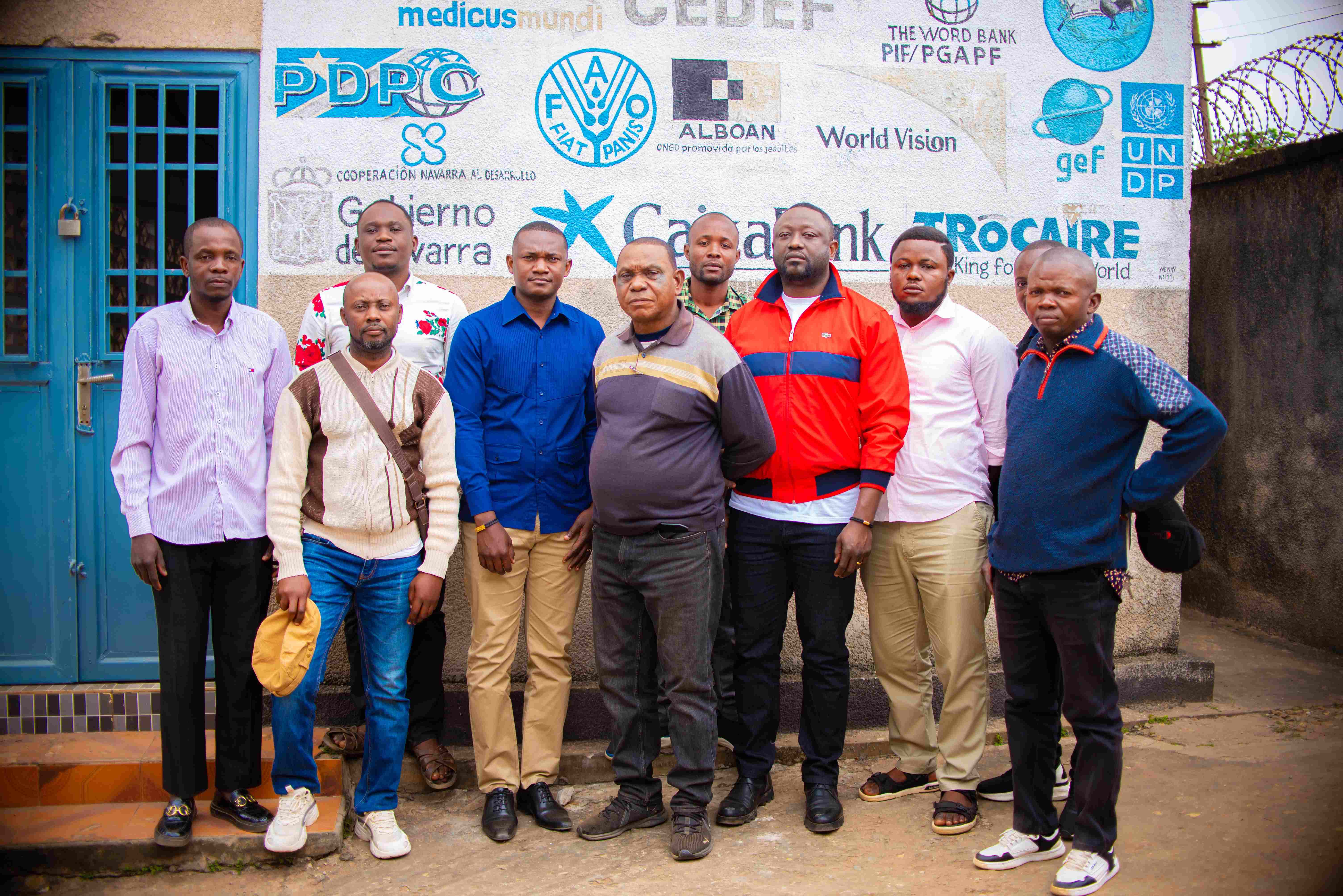 Photo de famille du staff technique dans l’enceinte des locaux de l’ONG CEDEF.